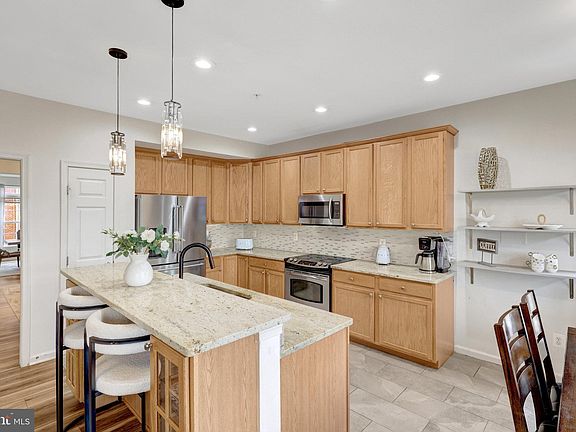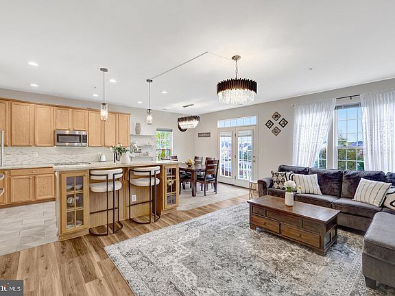 Welcome to this end-unit, 2-level Ryan Homes Picasso model, offering over 2,600 square feet of stylish living in sought-after Kirkpatrick Farms. This 3-bedroom, 2.5-bath townhome-style condo blends functional design with modern upgrades. Step inside to find brand-new luxury vinyl plank flooring on the main level and modern chic light fixtures that give the home a fresh, elevated feel. The end-unit placement fills the living spaces with extra natural light, highlighting the open-concept living and dining room framed by elegant columns and a bright bay window. The chef’s kitchen is ideal for both daily use and entertaining, featuring a large island, pantry, and a sunny breakfast area. A cozy family room sits just off the kitchen, while the private balcony is perfect for morning coffee or a small garden retreat. Upstairs, the spacious owner’s suite impresses with dual walk-in closets, a sitting area, and a spa-like bath complete with oversized shower, dual vanities, and a private water closet. Two additional bedrooms, a hall bath with dual vanity, and an upper-level laundry room round out this level. A 1-car attached garage adds storage and convenience. Located in Loudoun County’s Kirkpatrick Farms community, residents enjoy mountain views and resort-style amenities including a clubhouse, pool, tot lots, basketball and tennis courts, scenic trails, and ponds. With easy access to commuter routes, Dulles Airport, wineries, and historic sites, this home delivers space, light, and location all in one.
