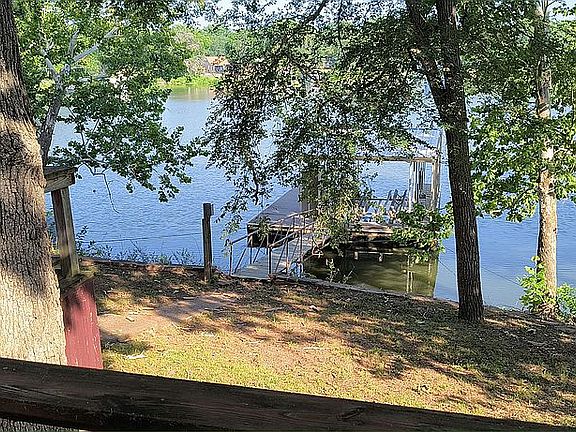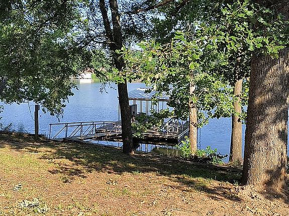 2 bedroom, 2 full bath, living and dining rooms face the water. Has wood burning fireplace, central heat and new A/C, new hot water tank, metal roof added a few years ago, multi-level deck overlooking the water, covered dock w/boat floater lift with encapsulated foam, and swim ladder. Includes a nice size garage - a pontoon boat will fit. 1400 sq ft