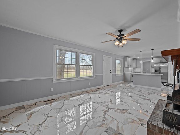 A little land to spread your wings on this 1.4 acre lot with this lovely updated brick ranch surrounded by pecan trees! The 4 bedroom 2 bath home located between Robersonville and Stokes has a formal living and dining room on the front of the house that can flex as a playroom, office or home gym. The open floorplan has a kitchen, dining area and living room with fireplace - complete with wood stove to add supplemental heat. The kitchen features an island for casual dining and plenty of counter and cabinet space. Updates include a brand new kitchen , bathrooms, floors, HVAC, appliances, and roof is 2 years old. There's a spacious laundry/mudroom/utility area. There is a carport and a nice wired workshop or storage garage. for your toys.