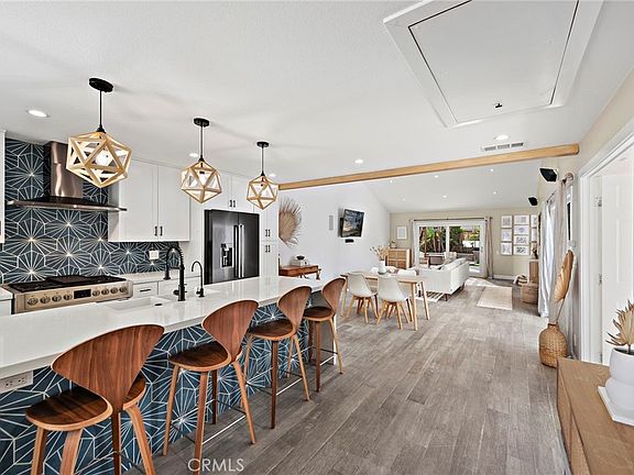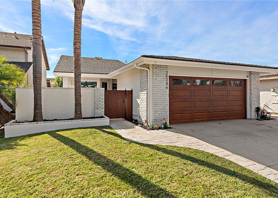 Positioned in a coveted cul-de-sac in the heart of Mission Viejo's Park Aliso neighborhood, this completely soft contemporary REDESIGNED and REMODELED residence represents the best of SINGLE STORY, indoor-outdoor living! An open, light and bright floor plan creates a real connection to the natural landscape, offering 1500 +/- sqft with 3 bedrooms and 2 bathrooms + completely detached and freestanding shed/office on an oversized 5,227 sq ft lot. Featuring OWNED SOLAR, enter into the inviting and entertainers large front patio enclosed by a NEW wooden gate and adorned by NEW designer hardscape. The beautiful contemporary front door invites seamlessly and links with two bright and airy living spaces; a living room with elevated beamed ceilings, recessed lighting and surround sound, two sets of French and sliding doors, and a kitchen which offers a 6-burner range, shaker cabinets and doors, quartz countertops, instant hot water, an entertainers eat in kitchen island with a quiet breakfast nook. The main floor living is completed by an oversized primary bedroom showcasing sliding doors to another outdoor living space, walk in closet with custom built ins, and a beautifully designed ensuite that offers separate circular sinks overlaying white oak cabinets adorned with quartz countertops, a stand alone shower with 2 shower heads and custom tile. Two additional bedrooms are linked by a remodeled bathroom featuring a walk in tub and shower and custom vanity. Exit to the completely tranquil and re-imagined back yard where you can dine alfresco under the shaded pergola and enjoy the custom gas fire pit and and fire pit features surrounded by artificial grass NEW hardscape, and galvanized raised garden planter! A private and detached accessory dwelling shed offers and opportunity for a home office or private guest space complete with vinyl flooring, hardwired internet and power. Notable improvements include: PEX RE-PIPED home, OWNED SOLAR 20X Panel, tankless water heater, 2 X 220 Volt electric vehicle hook ups, upgraded 200amp panel, large accessible attic for extra storage, reverse osmosis drinking water, 10 year old roof, hardwired ethernet cable to kitchen, living room, guest bedroom and shed, recessed LED lighting throughout, 6X hardwired nest/google security cameras, NEW Exterior Paint and NEW exterior tile hardscape.