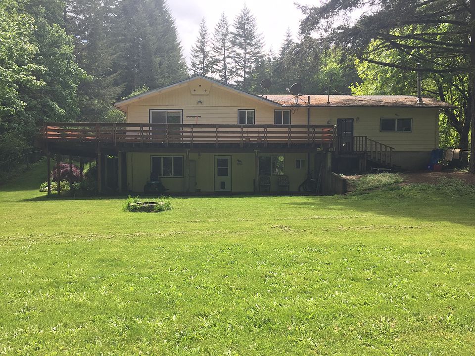 Beautiful and private wooded setting with creeks, garden, and fruit trees. Open kitchen dining w/ pizza oven, adjoingin living rm w/ FP, walls of windows & access to wrap around decking overlooking your backyard. Spacious 5 bedroom/ 3.5 bath home. See MLS #14250137 for additional adjacent property with 3 cottages (rent produces approximately $2,100/month). Seller to have well agreement created if parcels sell to different parties (one well services both parcels, Well located on 25388 Eldale.