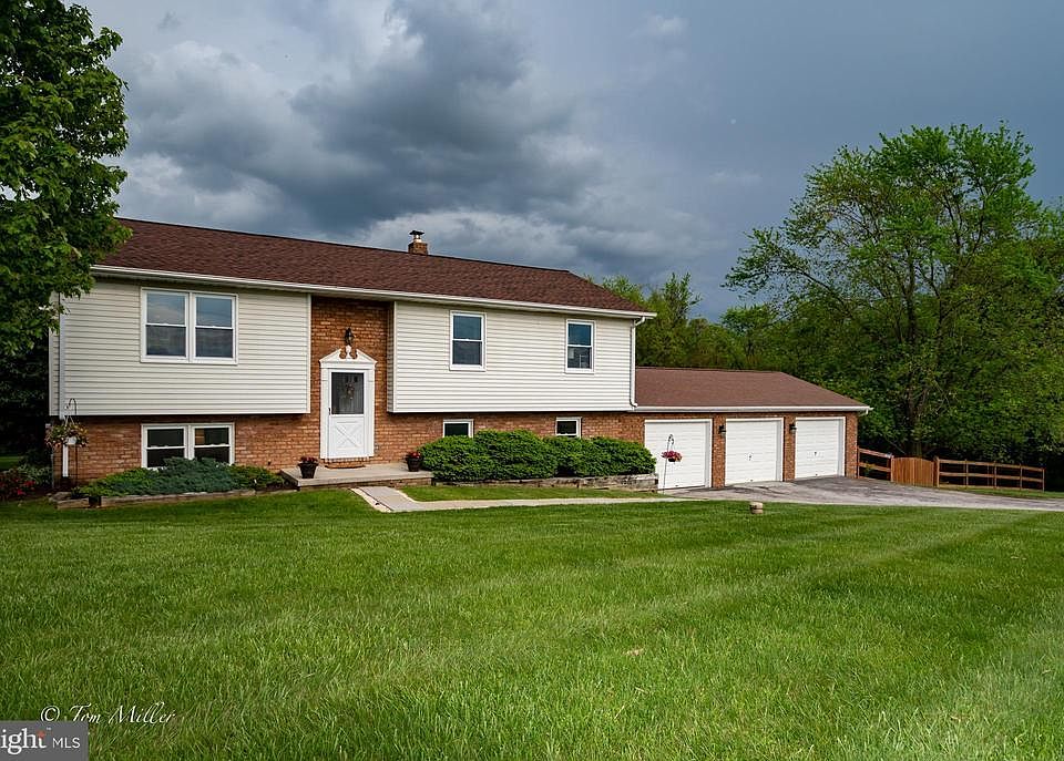 YOUR DREAM HOME AWAITS! Wonderfully MAINTAINED and UPDATED Split-Foyer Home with 4 BEDROOMS and 3 FANTASTIC UPDATED BATHS, INCREDIBLE OVERSIZED 3-Car Garage and GORGEOUS SCENIC VIEWS on nearly an ACRE LOT! SPACIOUS Living Room and Separate Dining Room have HARDWOODS, Kitchen has UPDATED STAINLESS STEEL APPLIANCES (2020) and separate BREAKFAST AREA with Access to NEW DECK & Stairs to PATIO. Main Level has a Primary Bedroom with LOVELY ENSUITE BATH, 2 additional BEDROOMS and UPDATED Hall Full Bath. NEWLY CARPETED Lower Level has Family Room with WOOD-BURNING STOVE and BRICK WALL/HEARTH, a FOURTH Bedroom, RENOVATED Half Bath with access to Laundry/Utility Area, ADDITIONAL Storage Room, and 3-CAR GARAGE! AWESOME, FRESHLY LANDSCAPED yard with partial fencing and UNDER-HOUSE Storage Room/Workshop with ELECTRICITY. FRESHLY PAINTED, WATER HEATER (2020), WELL PUMP (2020), DECK (2020), ROOF (2018), SS LINER in FURNACE CHIMNEY (2017), WATER SOFTENER (2017). ACTIVE for first showings FRIDAY, MAY 14th! SCHEDULE YOUR VISIT TODAY! OPEN SATURDAY, MAY 15th, 12-2 pm.