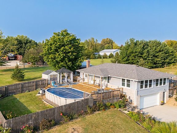 Searching for your little slice of heaven? Does it include an adorable, updated, turn-key home sitting on acreage, with outbuildings, a pool and CHICKENS??? If so, we have so much to talk about... First, this 2 bed, 1 bath cute and cozy raised ranch has so much to offer. Completely updated within the last 5 years; all new paint, fixtures, flooring throughout, front brick, new chimney/wood burning fireplace insert, HVAC, roof, gutters, siding, added insulation, front and family room windows, exterior doors, kitchen cabinets/countertop/appliances, remodeled bathroom(s), new concrete and asphalt driveway, epoxy floors in laundry space and attached garage and carport. Two great decks to relax on; one surrounding the 32'x16' heated pool and another with beautiful views! Potential 2nd bathroom in basement with a few updates (currently has shower/sink). Second; outbuildings. Giant 32'x27' shop with 3" thick concrete panels and wood burning stove. Each side of shop features a lean-to; one 8'x27' for storage the other 9'x26" with concrete floor and garage door. Chicken's also have their own space, 25'x15' barn with separate chicken coop! Great outdoor shed that has been transformed into a cozy nook perfect for curling up with a good book. Lastly, 4.14 acres of flat land perfect for a small hobby farm. Large producing garden, chickens and one horse is welcomed, sorry, no split hoofed animals allowed. Escape the hustle and bustle in this dreamlike escape, YOUR HOME!