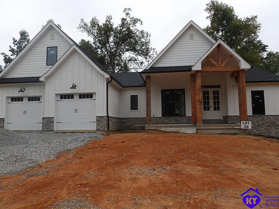 Modern Farmhouse at its finest. Welcome home to this stunning ranch style - black & white farmhouse nestled perfectly, overlooking the third hole at Heartland Golf Club. Offering 4600+ square feet of living space, 5 bedrooms, 4 full bathrooms, eat-in kitchen, formal dining, walk-in pantry, butler's pantry w/bar sink, separate laundry room w/storage, MASSIVE bonus space above garage w/separate full bath, wet bar in basement, golf cart/utility garage in basement, 10 FT tall ceilings in main areas of main level and basement, custom cabinetry throughout, quartz countertops throughout. Must SEE to appreciate all the fine details.