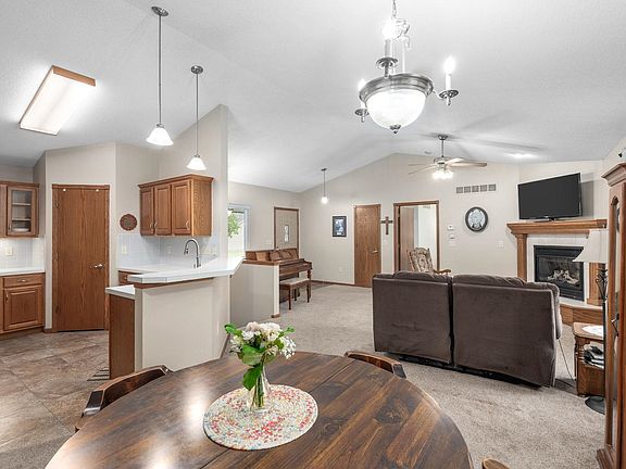 Welcome home to this absolutely immaculate 3 bed/3 bath/2 car ranch with stunning lake views in the peaceful Chisholm Point neighborhood. This home has been meticulously maintained over the years. From the moment you arrive, you’ll be impressed by the excellent curb appeal - featuring a lush green lawn, vibrant landscaping, and a welcoming covered front porch. Step inside to discover a bright, accessibe open floor plan with vaulted ceilings, extra wide doorways, a cozy gas fireplace, and an abundance of natural light. The kitchen offers a walk-in pantry, tile flooring, ample storage, generous countertop space for prep work, and a full suite of stainless steel appliances that stay for the buyer’s convenience. The adjacent dining area provides picturesque lake views and direct access to the rear deck. The expansive primary suite boasts scenic views, a vaulted ceiling, and a large walk-in closet. The en suite bath includes dual vanities, a shower/tub combo, and a full linen closet. The second main-floor bedroom is spacious and filled with light, and the hall bath is clean and inviting. A separate laundry room - complete with washer and dryer also remaining - sits just off the garage for easy access. Head downstairs to the walk-out basement where you’ll find a large family/rec room and a second full kitchen equipped with a range, fridge, and dishwasher - perfect for entertaining or multi-generational living. This level is completed with a sizable third bedroom, an additional full bath, and a substantial storage/utility room - which includes a second set of washer/dryer hookups. Step outside to enjoy the fully-fenced, beautifully landscaped back yard featuring a sprinkler system, flagstone patio, and a freshly stained deck - perfect for relaxing or hosting guests. Situated on a quiet cul-de-sac with wonderful neighbors and no special taxes, this home has it all. Don’t miss your chance - come see us now before it's gone! *See the promo video for additional views of this incredible home!*