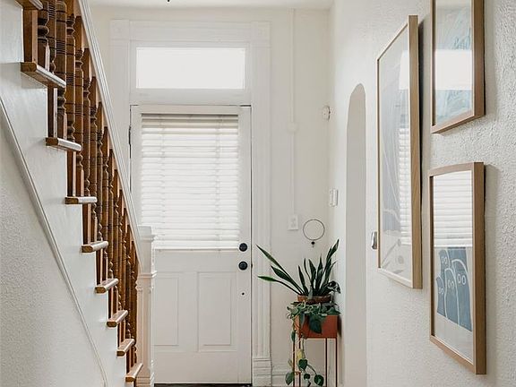 Upstairs, three bedrooms await, with the third bedroom being non-conforming. A skylight flows natural light into the hallway, leading into the full bathroom. From spacious closets to hardwood floors, the upstairs living area offers a retreat from the hustle and bustle of city life.