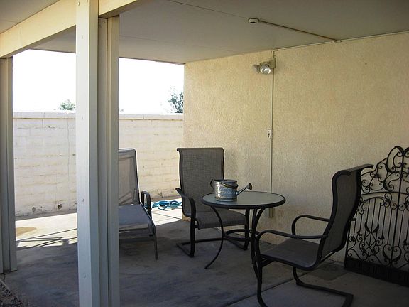 Furnished Unit on the Blythe Golf Course! Resort style living, the Fairway Villas are located along the number 12 golf hole on the beautiful Blythe Golf Course! This unit is beautifully furnished and ready to move in, built with easy living and efficiency in mind, these units have attached garages with door opener, automated water system for the desert landscape, double paned windows, extra insulation in the stucco and have both natural gas and electricity. This particular unit also includes an Arizona room which can be used for extra storage in summer during the hot months and used for entertaining in winter when the weather does not require air conditioning! The appliances include refrigerator, gas stove, gas dryer, electric washer, dishwasher, over the stove microwave and a soft water system. The water heater, stove, central heat and dryer are all natural gas taking the burden off of the electric bill. The attached garage has room for a car and a golf cart or desert toy. There is a Sparkling private community pool with Jacuzzi, perfect to relax after a long day and easy access to the Golf course club house for great food, drinks and friendly service. Great place to live, quiet and safe! Please call for an appointment! Renter pays all utilities and for internet & tv