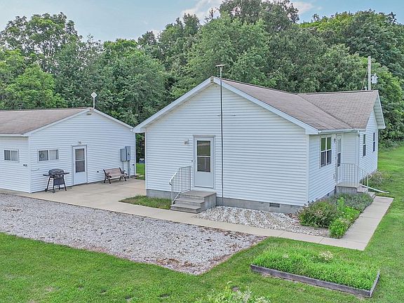 Country Living! This awesome 3 bedroom, 2 bath ranch home is located on 21.3 acres just outside the city limits! Approximately 12 acres of cropland (currently in hay) and the remainder in woods. The home was built in 2010 and has beautiful hardwoods, geothermal, appliances including washer and dryer! Outside there is a 30x40 Morton building with power and also a 24x40 detached garage with heated workshop that includes an industrial style kitchen/canning area, copper compressed air lines with multiple outlets, air compressor and a full bath! In the event of power outage, property has an off-grid 24V solar system that powers lights and outlets in all buildings. Lastly there is Safe Shed storm shelter located on the property. You need to see this one to fully appreciate all its offerings.