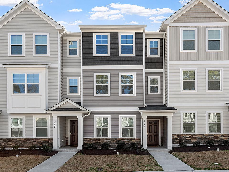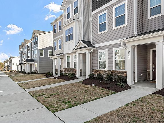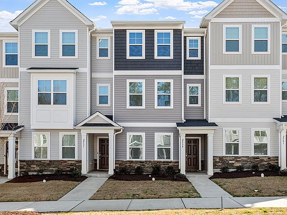 Welcome to this charming townhome built in just 2021. Each bedroom has it's own full bathroom. An array of upgraded features throughout. Luxury vinyl flooring upon entry, you'll find a bedroom that would double as the perfect home office or guest room. The main living area consists of an open floor plan with tons of natural light! The kitchen is the home chef's dream featuring quartz countertops, sleek grey cabinets, a gas range, and convenient bar top seating. Relax with you morning coffee or evening glass of wine out back on the covered deck. Upstairs, you'll find two additional bedrooms, each with its own bathroom and walk-in closet! The oversized primary bedroom is a peaceful retreat, complete with a walk-in shower and dual vanity. Whether you're a first-time homebuyer or seeking a low-maintenance lifestyle, this home offers the perfect blend of comfort and convenience. Enjoy easy access to the nearby Heddingham Golf Course. Don't miss out on this wonderful opportunity! Short drive to downtown Raleigh, RDU, and RTP!