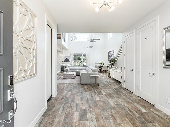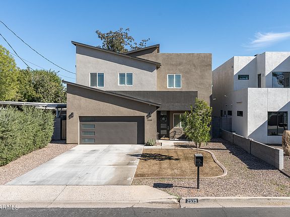 Contemporary architecture offering a light-filled space in a neighborhood buzzing with re-development. The split-level floor plan is ideal for privacy and the roomy loft on the second floor could function as a family room, or an airy home office. Primary bedroom suite is on the main level with spa like bathroom – soaking tub, tile shower, and walk-in closet. An open floor plan with a light palette, well appointed kitchen with back yard access are the perfect backdrop to entertain. Built in 2019 this home is turn-key, so you can enjoy all the perks of living in this close-in neighborhood without any hassle. All the ''Foodie Hot Spots'' in Arcadia/Arcadia Lite + Camelback Corridor, downtown Phoenix and the Biltmore are in close proximity.