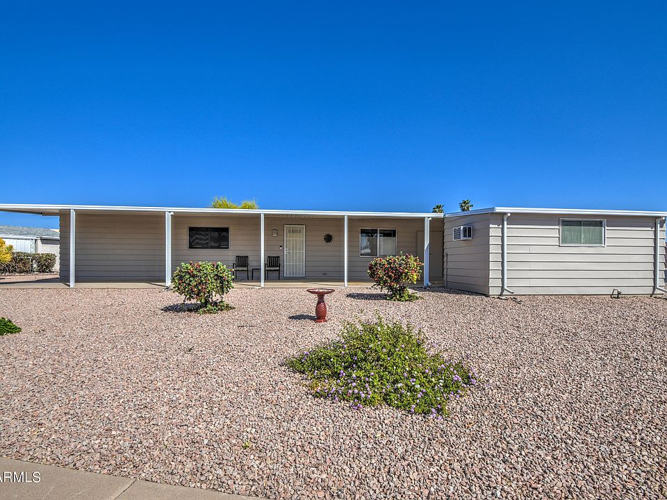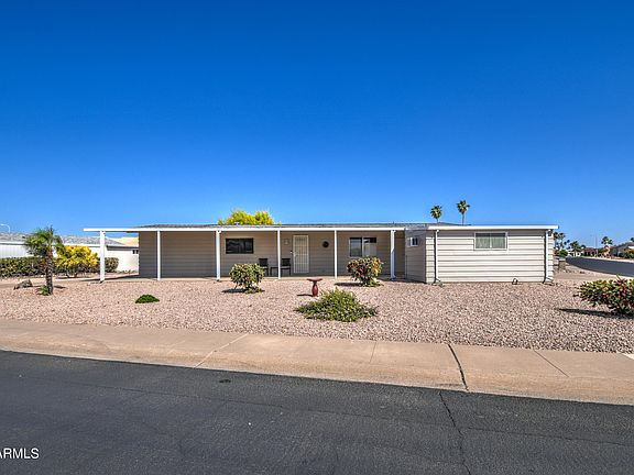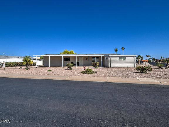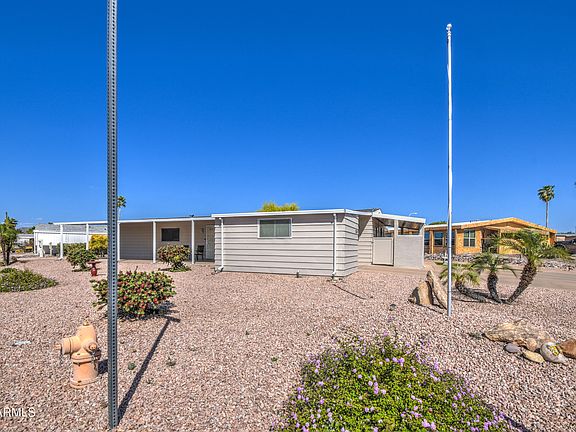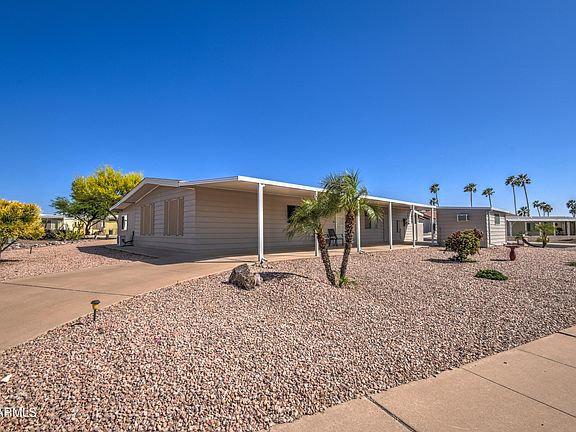 Talk about large lots. This two bedroom / two bath home is located on a 10,090 square foot lot. This is an all electric home. The Solar Panels are owned. The kitchen has a breakfast bar. There is a walk in pantry. The home has vaulted ceilings in the living room. There is a formal dining room with a patio door opening to the Arizona Room. The Arizona Room has separate heating and cooling. The Arizona room is extra large and not included in the square footage. There is a separate golf cart garage with an electric door opener. There is a nice work shop also. The circle driveway is a very nice feature to have for your convenience. Apache Wells is a 55 plus community with many varied activities for every one..