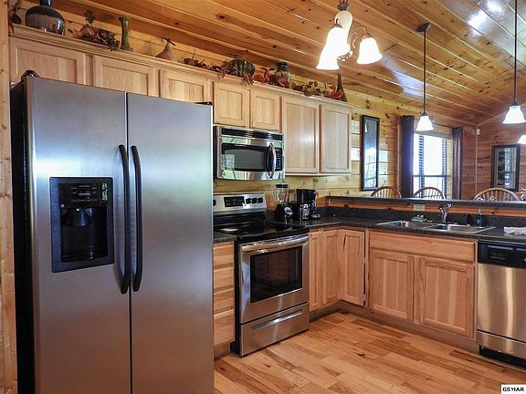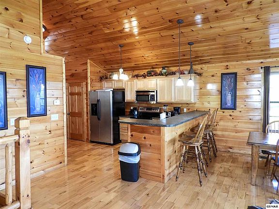 Stunning views from the 3 bedroom, all wood log cabin in the Hickory Hollow community in Wears Valley. This beautiful cabin features an open floor plan with a master bedroom on the main level, full kitchen, dining area, and large open family room. Wall of windows provides visible views from almost anywhere on the main level. The downstairs area has a recreation room with a pool table with room to add an arcade game if one so chose. The second bedroom and full bath is located off the recreation room and the third bedroom is currently being used as a small theater room. One could easily turn this room back into a bedroom as the third bathroom also connects to it. Both levels have a covered decks. hottub is located on the lower level deck. Cabin does well on rental and has tons of opportunity to make it even better. Call today to schedule a showing!