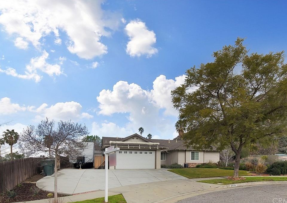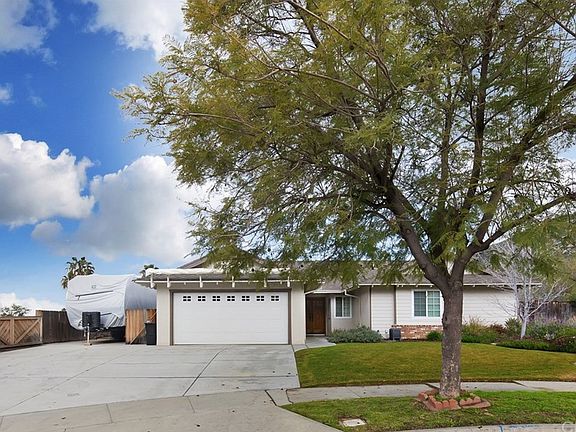 ADORABLE AND CHARMING Cul-de-Sac Single Story Home in a very desirable part of Riverside. Assessor states 5 bedrooms, however, the previous owners converted the 5th bedroom by splitting it to make a HUGE walk-in closet for the Master Bedroom. Custom textured ceilings. Open Floor plan. Office off of kitchen. Kitchen with granite tile counters and tons of storage space and pantry. Kitchen opens up to formal dining room and family room. Custom inlay tile and tumbled travertine throughout most of the home. Tile flooring in remainder of the home for easy maintenance. Cozy Fireplace in family room. Both bathrooms with granite counters and beautiful cabinets. Shutters in the dining room and family room. Master bedroom slider opens up to enclosed patio for additional storage, sun room, retreat.... your imagination at work.