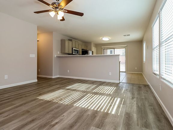 You will love this charming three-bedroom and two-bathroom rental home in Buckeye, AZ. The living area is spacious and open with wood-look blinds, a lighted ceiling fan, high ceilings, and natural/sky lights that keep the space bright and airy. The eat-in kitchen includes quartz countertops, tile flooring, and stainless steel appliances, making it a cook's dream come true. The master bedroom has its own private bathroom with dual vanity sinks and a bathtub, along with a walk-in closet. This home also offers a fenced yard, an attached two-car garage, a large backyard, and a covered patio. And if that wasn't enough, the community is also conveniently located near parks. Call us today to schedule a showing!