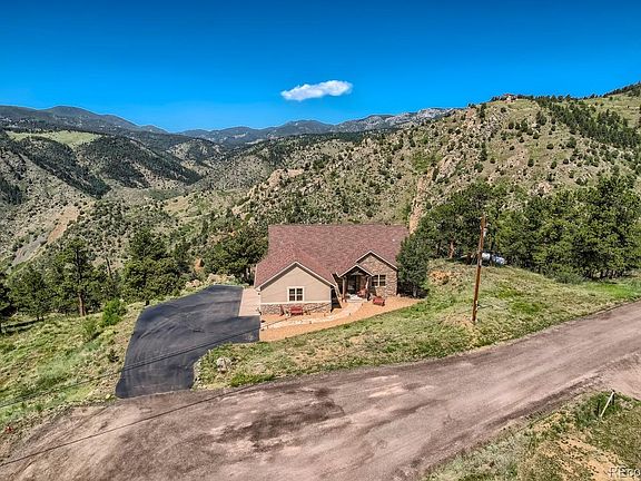 View video at https://www.virtuance.com/listing/25391-westridge-rd-golden-colorado-1 Contingency contract expired, Buyer couldn't get their home sold to buy this wonderful home. Be the first to make a reasonable offer as the Buyer's deal sadly fell through. A true estate on 4 acres of top of the mtn escape. Your new home offers incredible beauty, comfort, and solitude with multi-million-dollar views of city lights, Pikes Peak, and waves of flowing mountains. Enter a voluminous open indoor/outdoor living/dining space embraced by 4-inch red oak floors and large windows enhanced by plantation shutters adjoining large 327 sq.ft. trex deck (all new joists) with sail shade. Chef it up with New Kitchen Aid Black Stainless Appliances with Wolf digital stovetop and a double convection microwave set in soft-close Hickory cabinets and walk-in pantry, while always being reminded by the interminable views.