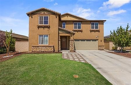 Seller very Motivated! You don't want to miss out! Price Improvement!! Welcome home to this Beautiful two-story home in the most sought-after community of Audie Murphy Ranch, in Menifee. This highly upgraded 3100sqft, 5 bedroom, 3 bath property offers tons of upgrades, OWNED SOLAR with a BUILT-IN SPOOL! As you enter the property you are greeted by tall ceilings, custom tile flooring high baseboards throughout and tons of natural light. The MAIN FLOOR offers a large BEDROOM and FULL BATH with a standing shower. The open floor plan features a great room style with an open kitchen featuring quartz counters, dark cabinets, stainless steel appliances, island with eat up bar and a huge walk-in pantry with access to the 3 car garage. The second story has laminate flooring, tall ceilings, high baseboards and features a large LOFT, laundry room with storage and wash sink, secondary bath with soaking tub/standing shower combo and dual vanity. The three secondary bedrooms are huge with walk-in closets. The spacious master features ceiling fan, views of the mountains and a master bath with walk-in closet, soaking tub, standing shower and dual vanity. Whole water purifier system and TESLA charging wall unit included. The entertainers yard features a California room, dog run, turf, hook-up and outline for a built-in BBQ, and a built-in giant spool with water feature. The community features pools, spa, sports courts, club house, skate park, is in the Menifee school district with the number1 elementary school is close to shopping and the 15 & 215 FWY. Screening/Leasing Details: -$30.00 Application per adult -$3295 Month Rent on 12 month Term -$3295 Deposit **Renter Insurance ** **Pet Deposit ** Small dog/cat welcome **Renter pays for all utilities