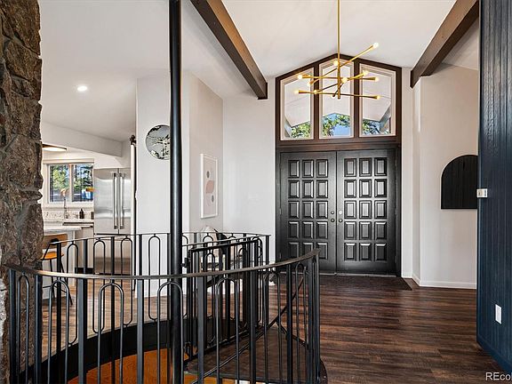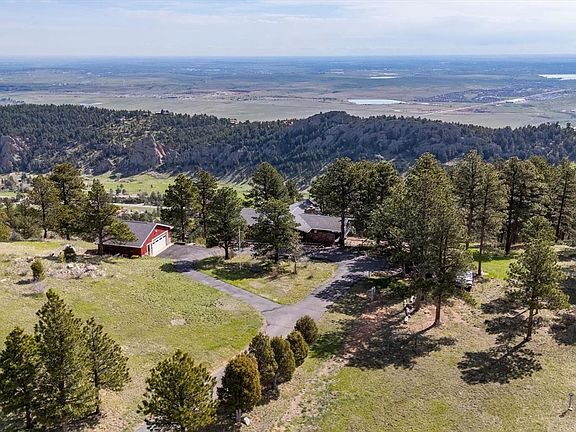 Open House Sunday 7/9/25 2-5 PM. Dreaming of a mountain retreat but need to stay connected to city life? This meticulously crafted mid-century mod ranch, nestled on nearly 5 acres is the perfect blend of serenity & accessibility. Located 20 minutes from Boulder, Golden & Arvada, this property offers unrivaled privacy, breathtaking mountain & city views, & an abundance of outdoor opportunities. Whether you’re gardening, playing disc golf, or pulling the kids on a sled behind the ATV(yes, the sellers really do that), this is a haven for those seeking both adventure & tranquility. Unlike typical mountain lots, this one is mostly flat and usable, bathed in sunshine all day long, w/ city lights sparkling at night. The property is easily accessible via JeffCo-maintained roads, and w/ fiber optic internet, you can stay connected. The custom-built home itself is a true masterpiece. The open, flowing floor plan features a high-end kitchen w/ new cabinetry & GE Monogram appliances, perfect for culinary enthusiasts. The stunning iron circular staircase & two-story rock fireplace create a dramatic focal point offering warmth & ambiance. The expansive living & dining areas are framed by walls of windows, showcasing sweeping views of the valley, mountains, & city below. Spacious primary suite includes a luxurious two-toned oversized shower w/ dual showerheads, creating a spa-like experience. The lower level is designed for relaxation & functionality, w/ a cozy family room, custom wood shelving, wood stove insert, private office, home gym area, & an additional bedroom. Walk out to the patio & fenced yard, complete w/ a garden area. Outside, you’ll find three distinct outdoor living spaces: a covered deck ideal for entertaining & grilling, a sunny front patio w/ perennial gardens & a cantilevered wrap-around balcony that makes you feel like you're living in a treehouse. This is a true sanctuary for those who value privacy, style, & the beauty of both nature & city life.