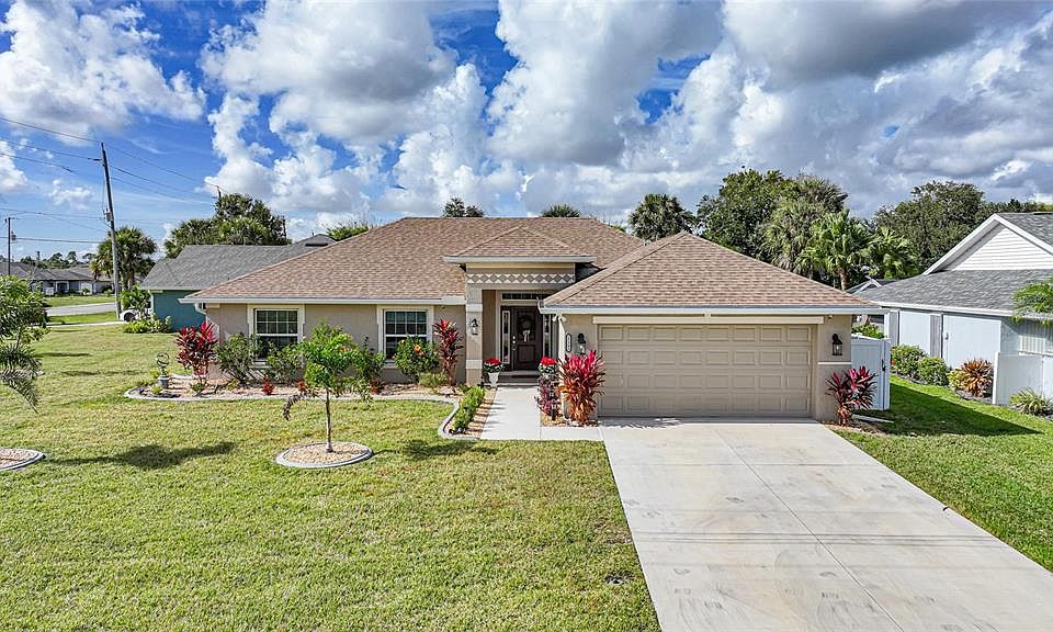 Welcome to this exceptional, like-new 4 bedroom, 2 bathroom pool home, perfectly positioned on a premium corner lot in the highly desirable Deep Creek community of Punta Gorda. Built in 2023 and further elevated with a brand-new, 2024 heated pool, this residence offers modern luxury, thoughtful design, and effortless Florida living. Step inside to discover a bright, open layout enhanced by soaring high ceilings and an abundance of natural light. The heart of the home is the spacious, beautifully appointed kitchen, featuring stainless steel appliances, sleek cabinetry, and generous counter space—ideal for everyday living or entertaining in style. The owners’ suite is a true retreat, showcasing an oversized master bathroom with dual vanities, a walk-in shower, and expansive closet space designed to impress. The additional bedrooms are equally comfortable, offering flexibility for guests, a home office, or a growing household. Step outside to your private backyard oasis where the heated 2024 pool invites you to relax, unwind, and enjoy year-round outdoor living. The covered lanai provides shade for dining or lounging, while the corner lot adds an enhanced sense of space and privacy. Additional standout features include: Epoxy-coated garage floor for durability and style, Generator wiring for peace of mind, Modern finishes throughout, A pristine, meticulously maintained interior and exterior Perfectly located in Deep Creek, a deed-restricted community known for its peaceful atmosphere, beautiful homes, and easy access to I-75, shopping, dining, golf, parks, and the vibrant waterfront charm of Punta Gorda. This is the opportunity to own a nearly new home with every upgrade already in place—move-in ready and truly better than new. Come experience the lifestyle, comfort, and quality that make this property stand out above the rest.