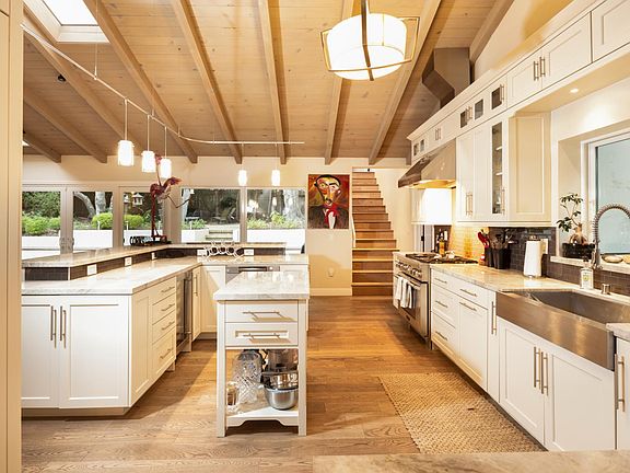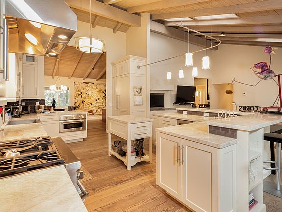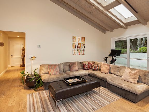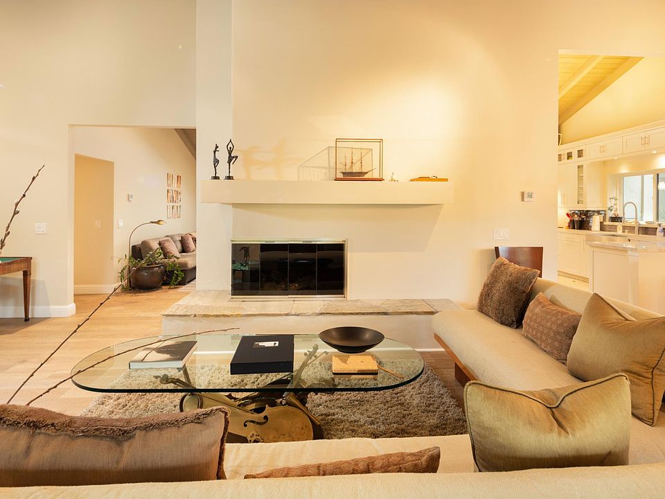 **This home is a vacation rental** Available for At&t February 8-10, Concours August 12-19! Art & Sound is a contemporary 5 bedroom spacious getaway nestled on the top of Carmel close to HWY 1. Full of original artwork and a player piano this home boasts of fun filled times and cherished memories to be made. There are 10 steps up to the front door. When entering the front door you are greeted by art statues and paintings. Turn toward the right and you will be the spacious living room the features a fireplace and a player style of piano with many CD's to choose from. As you walk past the living room you see the dining table that seats 10. Next is the chef ready kitchen will all high end stove, oven, wine refrigerator, built in microwave, Kitchen aid mixer, food processor, etc. There are spices and every pot and pan to cook with for your hearts delight. The kitchen is open to the family room which has a flat screen TV and a fireplace. This room also has a Petoton exercise bike that is available with an online membership.The family room back wall is all windows and a sliding glass door that opens to the back yard for visiting, firepit or grilling. The Master Suite is upstairs and off of the kitchen and features two seating areas, King bed, its own private balcony, free standing tub with a view, shower and two sinks. It even has its own fireplace! The other bedrooms are to the left of the front door. The bedroom closest to the front door has a double bed. The bed room closer to the kitchen has a queen bed. The bedroom down the hall as a King bed and the room across the hall is an office (can be converted into a bedroom with a queen bed if needed). The garage has a rubber floor and will hold 2 cars. There is room for approximately 8-10 cars on the property. Keywords: Carmel, Pebble Beach, Golf, 5 bedrooms