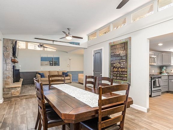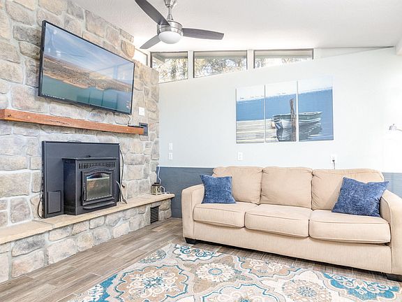 This gorgeous lake home is ready for your weekend get away or your full time residence. You can enjoy this remodeled home snuggled up by the Pellet stove in the winter or out on the patio for your summer gatherings next to the little Koi pond. This property backs up to timber which provides a feeling of seclusion and also gives you the opportunity to enjoy the wildlife. The home features a nice garage for your boat or lake toys. On the side of the garage is a Bunk House but, could also be used as a workshop or office. This property sits less than a mile from Big M Marina and Rock Creek is just a few blocks away.