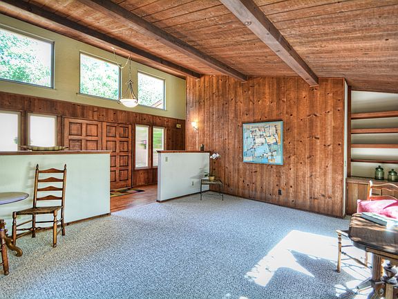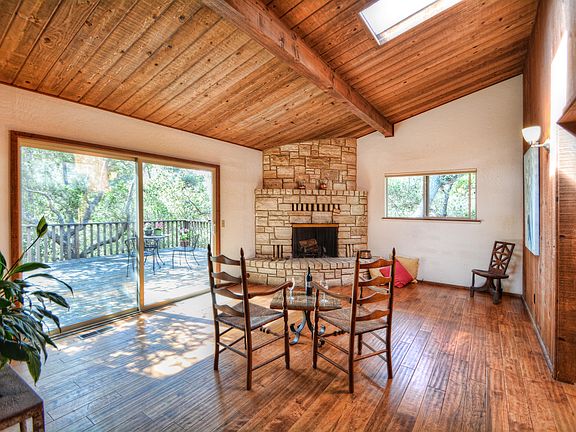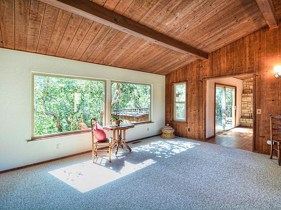 Enter into the private court yard where you will find this single story Carmel Views home nestled in a private forested setting. This 3 bedrooms, 2 bath home has high open beam ceilings, updated kitchen w/ stainless steel appliances, maple cabinets, granite counter tops, & wood floorings, utility room, extra storage and a detached garage. Ready to move in as is or update w/ your personal flair.