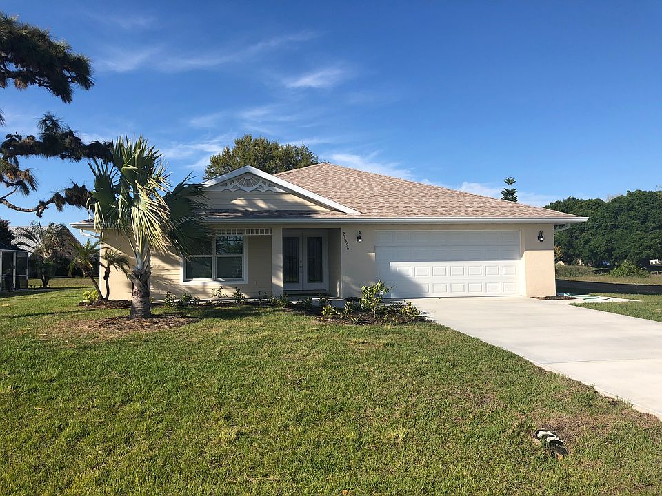 HUGE 30K PRICE DROP! BRAND NEW CUSTOM HOME, JUST COMPLETED!!! Join me on a tour of this home from the covered porch entry way with plank accent walls and a stained wood ceiling to the stunning glass entry doors. The front doors open to a spacious foyer with a office/bedroom and bath to your left and access door to the double garage on your right. Continuing through on the custom plank flooring you enter into a very open, high-end kitchen overlooking the impressive living/dining room with a tray ceiling and hidden soft lighting with double french doors leading to the enclosed lanai. All appliances are Stainless Samsung such as a 5.9 smooth top range, self-cleaning convention oven, and stainless range hood. You will also find gorgeous solid wood cabinetry that highlights the kitchen tremendously. The granite counters and large single level island add to the spaciousness and flow of this home. Continuing through to the large Master suite find beautiful tray ceilings and elegant French doors with built-in blinds leading to the lanai. A walk-in shower with a luxurious stainless steel European style massaging shower panel. The solid wood vanity with double vessel sinks and single faucets are raised off the floor. Above the vanity are double fully mirrored cabinets perfect for extra storage under crystal LED lighting. All windows are impact glass and light fixtures are energy efficient LEDs. This home is very open, comfortable, and inviting. Definitely not your "typical" home! Call for a showing today!