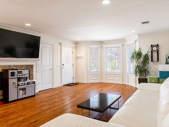 Beautiful brick duplex near NYC transportation and highways, featuring 3 bedrooms and 3.5 baths. Highlights include unique finishes, open-concept living/dining, a kitchen with granite countertops, an island, stainless steel appliances, and a deck. The master bathroom offers a Jacuzzi, walk-in shower, and skylight, with two additional spacious bedrooms. Ground level includes a studio with a separate entrance. Also features a 2-car garage, central air, and proximity to restaurants and shops.