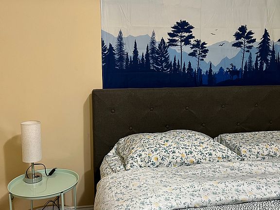 - Exterior features: Bathtub, Carbon monoxide detector, Clothing storage, Coffee maker, Cookware, Dining table, Dishes and silverware, Fire extinguisher, First aid kit, Garden, Hangers, Hot water included in rent, Kettle, Kitchen, Laptop friendly workspace, Private entrance, Room-darkening shades, Single level home, Smoke detector, TV, Toaster, View Type: Garden View
