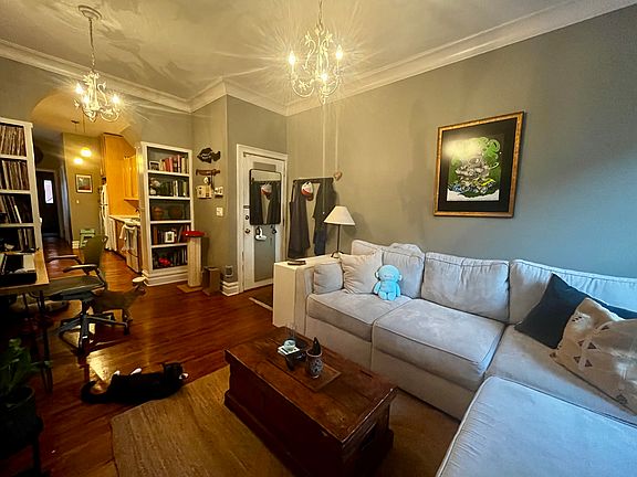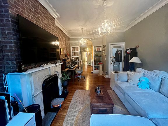 Situated on a quiet tree lined street overlooking Hamilton Park in Historic Downtown Jersey City is this charming true one bedroom. Living/ dining/ work space areas feature high 10' ceilings, HW floors, exposed brick, decorative fireplace, ornate chandeliers, large windows & crown molding throughout. Renovated kitchen - custom cabinetry, granite counters, dishwasher, custom lighting & built-ins/ shelving for extra counter space/ storage. Head to the back of the home for ultimate privacy into your sizable one bedroom with ceiling fan featuring a spacious walk-in closet & leading to an outdoor private terrace perfect for starting and ending your day. Also available is a locked storage unit and shared laundry in basement. Easy street parking. 1 a/c window unit included. Perfect for commuters as there is an NYC direct bus stop less than a block away and conveniently located near Pavonia-Newport PATH and Light Rail Station. Pets case-by-case. Preferred move in 11/1. Owner pays for cold water, sewer and garbage. Tenant pays for gas and electric.