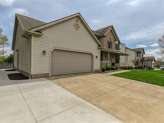 Brick and vinyl colonial with a full front porch at 254 Adelaide Ave SW Hartville in Cornerstone development. Foyer entry leads to the spacious great room featuring a gas fireplace and opens to the dinette and kitchen. Generous kitchen boasts plenty of cupboards and counter space, adjoining dinette opens to the cover porch, a newer patio with a firepit and fenced backyard. Formal dining room, first floor laundry and a half bathroom complete the first floor living area. The second floor offers 4 bedrooms, 2 full bathrooms, which include the master suite with a walk-in closet, and full bathroom. Expanded living space in the very nicely finished lower level with a playroom or office, recreation room and half bath. Great location, close to shopping, schools, YMCA.