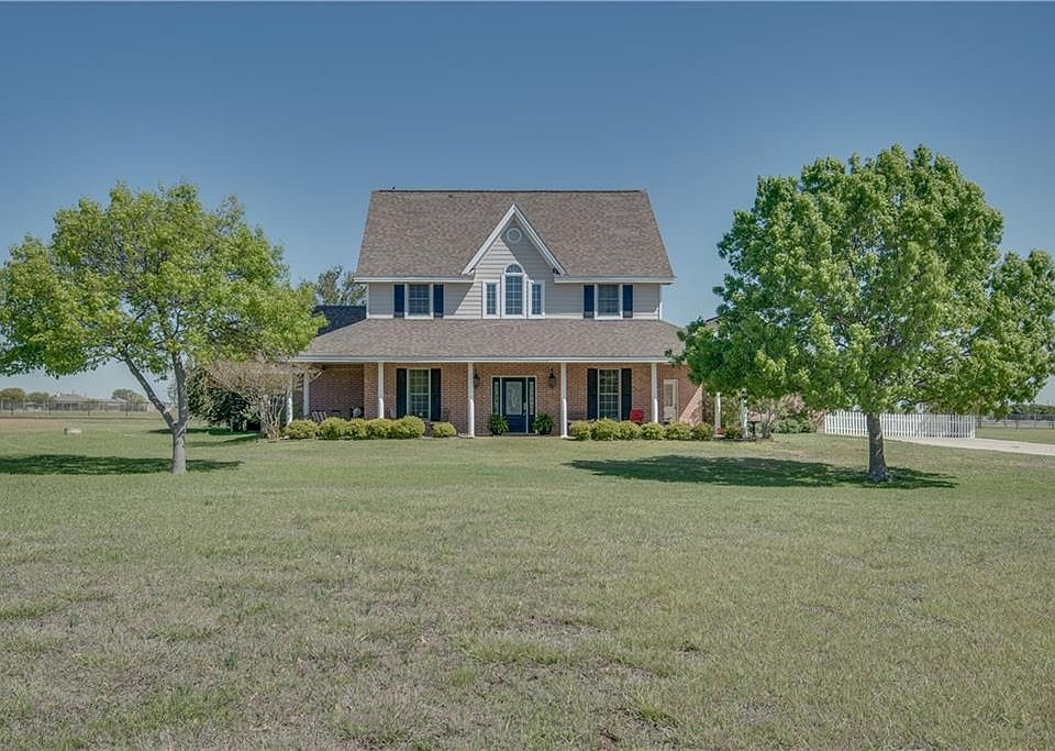 COMING SOON! Rare 5+ acre COUNTRY PARADISE within minutes of city conveniences & Northwest ISDs! Original homeowners expertly maintained this lovely home. Beautiful hardwoods & soaring ceilings greet guests. Separate and spacious formal dining and study at entry. Open floor plan plays host to beautiful white kitchen with upgraded appliances (refrigerator included). Floor-to-ceiling wood burning brick fireplace is perfect feature in living with easy access to back staircase. Spacious first floor master with dual vanity en-suite w garden tub and separate shower. Separate utility offers plenty of folding space. Upstairs bedrooms are generous in size with one on-suite. Large workshop offers electricity and water.