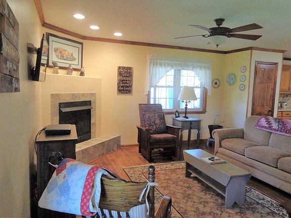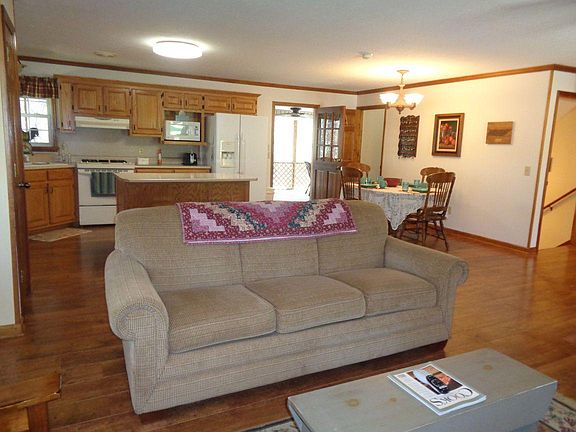 Beautiful home on 20.6 +/- acres. A picturesque setting. At the driveway you will see & hear the tranquility of a country lifestyle. Nice living-dining-kit combo opens to a gorgeous covered porch overlooks woods & nature. Wooded/pastured & fenced. Bring your Mother-in-law, family, all pets & horses. 2800+/-. Upper story private. Fin.Basement a must see. Horse barn, garages, shed, storage, chicken coop. What more can you ask for! Come see today. Opportunity for privacy & a piece of paradise.