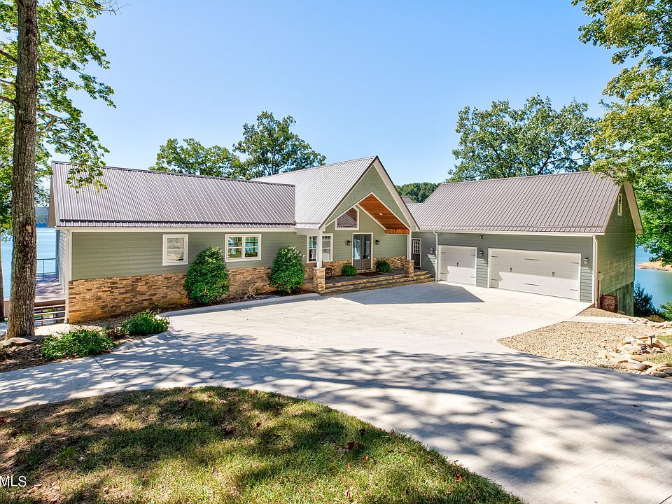 This premier Norris Lakefront property boasts over 340 feet of deep water frontage. This custom built 6BR/ 4BTH/2Half Bath home sits on a LEVEL 1.21 acre point on Norris Lake located in Private Gated Community of Deerfield Resorts with Spectacular Open Water and Mountain Views. Built in 2020, this home features an open floor plan. All rooms have a view of the lake. The main level includes a gourmet kitchen with stainless steel appliances, granite counter tops, pantry, large great room with stone fireplace, 2 master bedrooms and large covered porch. The basement includes a large rec room, an additional large master bedroom with a large bath room that includes a walk-in shower and shower/tub combination. There are 3 additional bedrooms that share a bathroom and a half bath. Luxury vinyl and tile throughout. The outdoor living space also includes a large screened in porch and a firepit area. The 560' bonus room above the oversized 3 car garage is partially finish with an additional room for sleeping and a half bath and split unit air unit. There is an additional utility garage on the back right hand side of the house. There is a concrete path to the lake and your private double slip covered dock with swim platform. There are also 2 boat lifts currently fitted for pontoon boats. It is hard to find a level lake front property on Norris lake. This is your opportunity!!