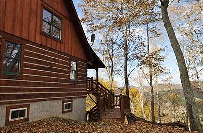 Long range, Grandfather Mtn. views from immaculate log home on almost 2 acres. Private, tucked in woods yet within mins. to Boone & Appalachian State. Multitude of options: 4 bedrooms & 3 full baths - but additional sleeping room & HUGE loft equals 5 sleeping spaces. Great room features striking, vaulted ceiling with beams & stately stacked stone fireplace. Open living: dining room & kitchen with stainless appliances, hickory cabinets and bar flows from great room. Double French doors lead from dining & great rooms to covered & uncovered deck - greatly extending living/entertaining space.