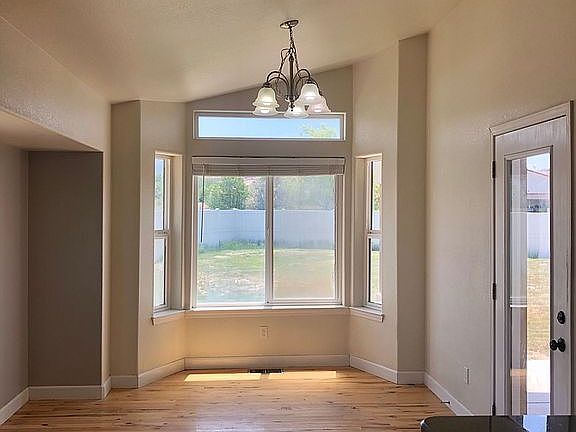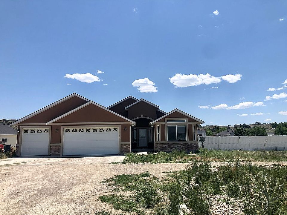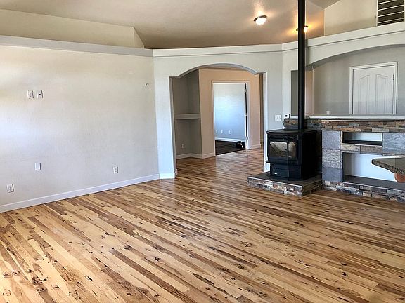 Look at the beautiful hardwood flooring throughout this spacious 4 bedroom, 2 bathroom, one-level home on 1 acre of land, less than a mile from Spring Creek Marina, Khoury’s Fresh Market, Spring Creek Golf Course, and restaurants near by. The interior features granite counter tops in the kitchen, both bathrooms and laundry room, a large master bedroom and master bathroom with two separate sinks and a soaker tub, as well as a walk in closet. The barn door is going with seller unless the offer specifically includes it. The three other rooms are spacious, one could be used as as an office or nursery. The living room has a pellet stove and mantel. The kitchen has stainless steel appliances, pantry, a breakfast bar, and a separate dining area. There is a fully covered back patio that looks out to the Ruby Mountains and backyard. The backyard is fully fenced with 6 foot white vinyl privacy fence, fully installed sprinkler system, fire pit area and raised garden bed. The front yard and backyard both have a drip system.