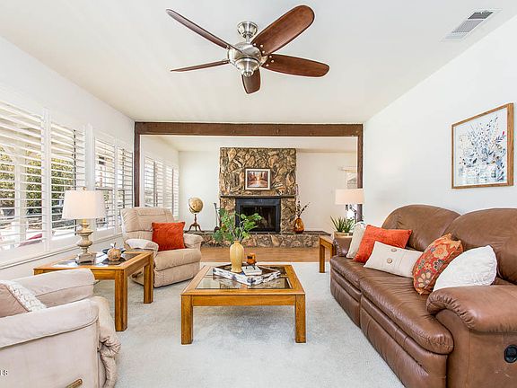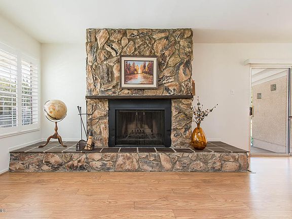 Escape to country living in this quiet and peaceful neighborhood nestled in the foothills of Newbury Park. This charming single-story home offers four bedrooms and two full bathrooms on a large flat lot. Numerous outdoor living areas start with the front porch and extend to the large covered back patio, side patio and separate gazebo. Step inside to the light and bright living room with rustic stone fireplace. Custom cabinets, granite counters, stainless appliances and a skylight are featured in the updated kitchen which opens to the dining area. Relax in the beautiful master suite with cathedral ceilings, luxurious updated bathroom with separate tub/shower, and French doors that open to the private back patio. Updated second bathroom serves three additional bedrooms. Newer windows, plantation shutters, fresh paint, smooth ceilings, laminate flooring, and ceiling fans are throughout most of the home. Indoor laundry room and newer HVAC system are a plus. Detached 2-car garage is close by with the front of the property providing lots of additional parking spaces and possible RV. This is a must see!