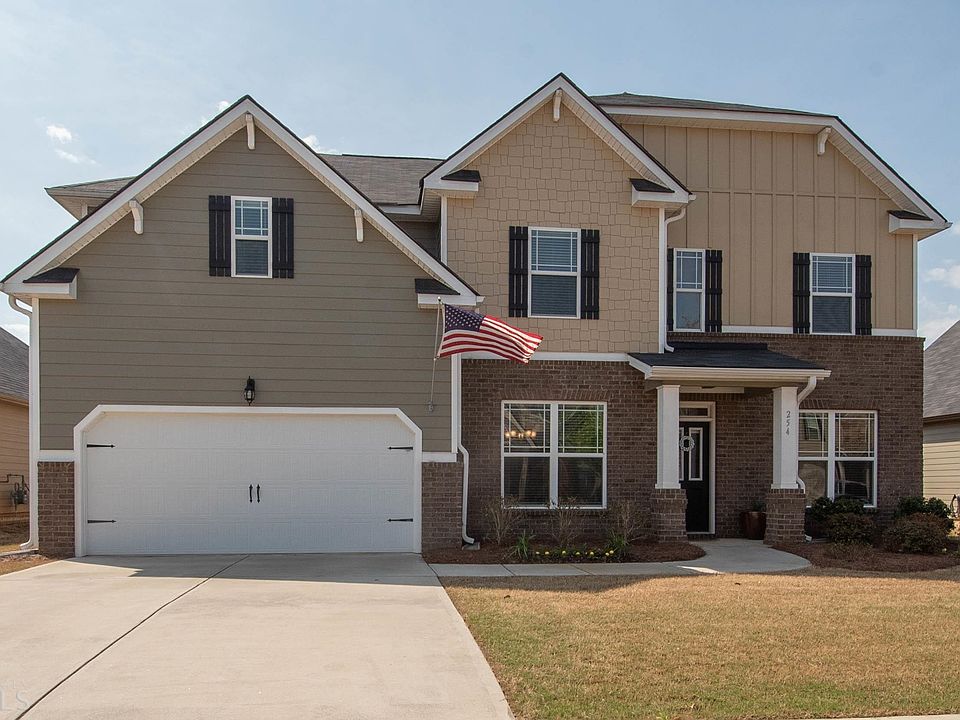 Like New, built in 2019 with wonderful $28,236 in documented upgrades throughout. The desirable Savannah plan with 5 bedrooms and 3 full baths with a main floor guest bedroom and full bath plus a main floor separate office. This beautifully maintained home looks like it has not been lived in! It's super clean and move in ready. Enter from the covered front porch into the foyer with upgraded hardwood floors, 5-inch-wide hand-scrapped wide plank throughout the main floor. To the right is a large separate office perfect for working from home or could be a separate living room. To the left is a formal dining room with coffered ceilings and upgraded trim, straight ahead is the large family room with hardwood floors, and fireplace with gas logs. The bowed wall of windows is curved to let in additional light, the kitchen is open to the family room with a kitchen island, all stainless-steel appliances including, double oven, separate built-in microwave, gas cooktop, dishwasher, granite counter tops and tile back splash. There is an additional eat in area off the kitchen with a door to the exterior covered rear porch. The back yard is level and fully fenced. Back inside the home also off the kitchen there is also a door exiting to the kitchen level 2 car attached garage. The entire first floor is upgraded to hardwoods except the main floor bedroom which is upgraded carpet and the tiled full bath on the main floor. Going upstairs, all the stairs are real hardwoods including the top hallway on the second floor. The Owner's suite is very large with a trey ceiling and a huge bonus room/sitting/entertaining room or second office. It is the size of the downstairs family room with the same curved wall of windows. Enter from inside the owner's suite bedroom. The owners bedroom and the large owners retreat room both have Hardwood floors. The owner's bathroom has dual sinks with cultured marble countertops, separate garden soaking tub, custom tiled shower, a large walk-in closet, separate water closet and linen closet. Bathroom floors are tiled. The 2nd floor also has three additional bedrooms and a full tiled hall bathroom and upstairs laundry room. This premium lot has no home behind the fenced back yard for additional privacy. There is $14,401 in Documented Additional hardwood floor upgrades through most of the home. This is a must see and will go quickly at this price. Heritage Ridge is convenient to everything, restaurants, shopping, Interstate 85 to Atlanta airport and Newnan hospital. Neighborhood has a clubhouse, pool, lighted tennis courts, parks and fenced playgrounds. Occupied, appt only through showing time. GAMLS Supra lockbox