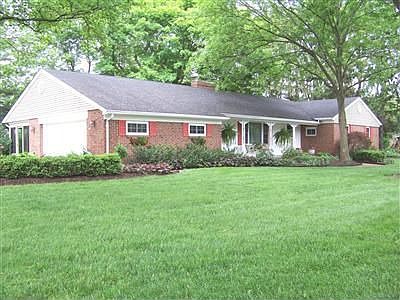 Gorgeous treed .55 ac lot provides a perfect backdrop for this ranch floor plan! Paver walkway leads to a charming covered front porch entry. Hardwood flrs add warmth & polish in much of the home. Formal living rm w/crown moldings & fireplace. Fam rm also has a fireplace, wall of built-ins & custom plantation shutters. The bright&cheery kitchen has updated counters, sink, flooring, backsplash & appls. A 3 season rm offers ceramic tile, new windows&doors, paddle fan & leads to both garage & rear patio. Dining rm features crown molding & convenient closet storage. Master suite has updated bath. 2 other generous sized bedrooms share 2nd updated bath. Basement boasts a 3rd wbfp & finished rec space, along w/abundant storage. Mechanicals incl Hi Eff Lennox HVAC, radon mitigation system, new water htr. Numerous updates include sunroom, windows, 6 panel drs, garage door, appliances, driveway, siding, paver walkway & landscaping, baths & kitchen. Home warranty offered