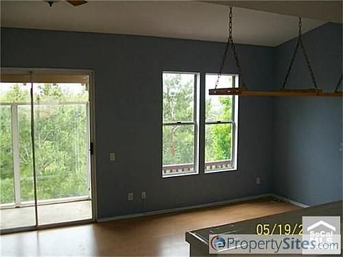 Quiet location in the beautiful community known as CALIFORNIA COURT. Attractive complex freshly painted with mature manicured landscape. Property has tree and city light views on the North West side of the unit. This home offers 2 carpeted bedrooms. There is a 3rd room/den/ loft with a built in mirror closet (this needs a door to be a 3rd bedroom). The master bedroom has a spacious walk in closet and attached bathroom. High ceilings and open kitchen to the dining and living area makes everything feel spacious. The beautiful kitchen has upgraded granite counter tops and an under-mount sink. This is a very desirable floor plan, move in ready and in a great location. Balcony faces spectacular sunsets. Direct garage access from this private end unit. Newer paint and carpet. Laundry Hook-ups in garage alcove. Short walk around building brings you to a great place to start those nature walks while admiring the fresh open view of Saddleback Mountain. Community pool and spa included. The toll road and shopping are close. This is a must see property. Great view and floor plan.