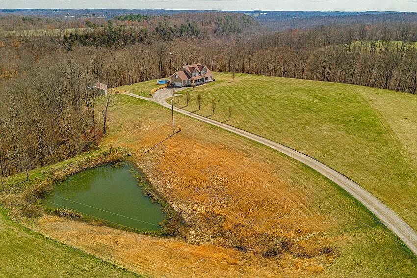 Private country elegance on this gentleman's farm in south central KY. Large custom built home. You are going to love the attention to space and details. A big covered front porch takes you into the two story foyer and immediately you feel at home... to the left is a formal dining area and to the right is an office. Moving from foyer straight to the large great room. The living space has a soaring 2 story ceiling, fireplace, more wood flooring and access to the big deck overlooking the pool. The kitchen and breakfast area are all open to the living room. The kitchen boasts an abundance of beautiful custom cabinets . Just off the kitchen is the laundry room and guest 1/2 bath. Finishing the main level is a large master suite complete with master bath (separate tub/shower) and his/her walk-in closets. Going up the open stair case to the second level you find 4 large bedrooms (one with its own bathroom) and then another guest bathroom upstairs. Lots of good closet space in each