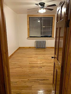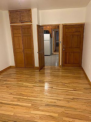 Spacious 2 bedrooms with separate entrances to each bedroom from the hallway. Large windows and closets in each bedroom. Real hardwood floors throughout. Lots of cabinet space in the kitchen. Apartment is freshly painted. Heat and hot water included. No dogs, cats ok. Financial verification and good credit required. First, last and security deposit to move in.