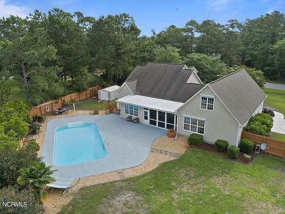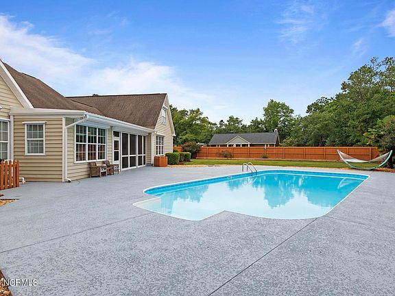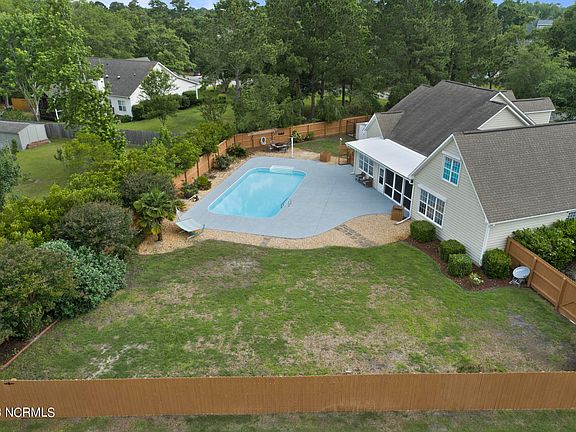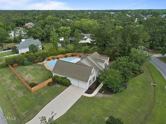 Welcome to this stunning one-story home located in the desirable neighborhood of Greenway Plantation, just minutes from the intracoastal waterway, Topsail schools, and Kiwanis Park. Doral Drive features 3 bedrooms, 3 bathrooms, a huge bonus room, an attached 2 car garage great for an at home gym, and a home office, offering ample space for comfortable living. The home sits on a corner lot and is one of the biggest lots in the neighborhood of about 2/3 acres with no direct neighbors for plenty of privacy! As you enter, you are welcomed by the elegant formal dining room, great for hosting gatherings and creating lasting memories. The living room features trey ceilings, a fireplace, and hardwood floors adding warmth and charm to the space. The gorgeous sunroom boasts an outdoor wet bar and is currently set up as an outdoor/backyard bar space, providing a great spot to relax in the spring or summer. It is the perfect place where you can entertain guests while enjoying the serene views of the large fully fenced-in backyard oasis. The outdoor space is complete with an inviting 20,000 gallon saltwater, in-ground pool, ideal for relaxation on warm summer days. Additionally, a large outdoor shed and an outdoor shower provide convenience and storage for all your needs plus lush landscaping year round with an irrigation system. With storm-style shutters controlled remotely on some of the windows, you can effortlessly enhance privacy and control the amount of natural light that enters the home. These shutters also serve as a great room darkening feature for added comfort and tranquility. Inside, the bathrooms are adorned with beautiful tile floors, with a touch of luxury. The master suite is a true retreat, featuring a spacious walk-in closet with built-in shelving for all your storage needs. Indulge in relaxation with the separate jetted master tub, perfect for unwinding after a long day. The walk-in shower and dual vanity complete this luxurious space. Schedule a tour today!
