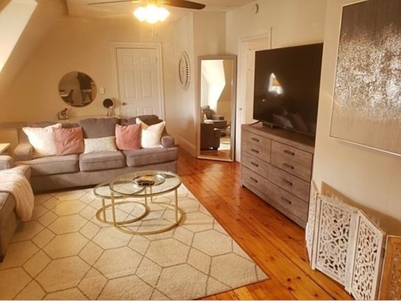Lovely 2 bedroom apt on top floor. Enjoy your morning coffee on private back deck with water views ! Freshly painted throughout , hardwood floors , eat in kitchen with white cabinetry , washer and dryer in unit . Great location ,just a short walk to public transportation Sorry no pets, no smoking C21 1st, security , 1/2 fee Email now for showing