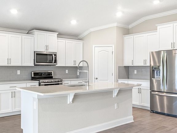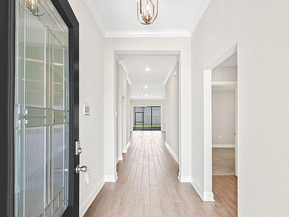 Built in 2023, this pristine, just like new home is nestled in the desirable Dorado area of Entrada. Featuring 4 bedrooms and 3 bathrooms, the home boasts a split, open floor plan that offers both privacy and a seamless flow for entertaining. With just over 2000 square feet of living space, this DR Horton home has everything you need. Upon entering, you'll find two guest bedrooms sharing a bathroom off the entryway. Moving further into the home, another bedroom and bathroom are conveniently located halfway down the hall. The heart of the home features a spacious living room, dining area, and kitchen that effortlessly blend together. The kitchen is equipped with quartz countertops, stainless steel appliances, a tile backsplash, ample cabinet space, and a corner pantry for easy access. The oversized island provides extra seating for guests. The master suite, located at the back corner of the home just off the living room, features a tray ceiling, views of the backyard, and an en suite bathroom with dual vanities, a tiled shower, and two walk-in closets. Sliding doors from the living area open to a screened-in porch, perfect for enjoying your morning coffee year-round. The fully fenced backyard offers plenty of green space for gardening or hosting barbecues with family and friends. Tile flooring throughout the main living areas ensures easy maintenance. Situated at the rear of Entrada in Dorado, this home is within walking distance to a fenced-in dog park and is part of a gated community. Entrada's amenities include a playground, clubhouse, pool, tennis courts, basketball courts, and more. Additionally, the location offers a short drive to Historic Downtown St Augustine, the gym, dining options, coffee shops, and the beach. This home is a perfect blend of comfort, convenience, and community. Enjoy!
