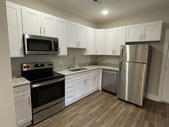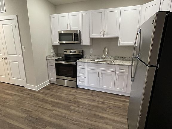 The Lancaster is a 1bd, 1 bath ground floor apartment. Each unit features granite countertops in chef-inspired kitchens, stainless steel appliances, luxury wood inspired flooring, walk-in closets, a front patio, and full-size washer and dryer set.