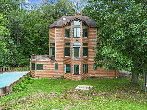 Nestled on over 7 acres of serene, wooded land, this rare custom-built home offers a unique blend of architectural flair and natural beauty. Featuring three spacious bedrooms and three and a half bathrooms, this residence is a haven for those seeking tranquility. Inside, you'll find hardwood floors that add warmth and character to the space, along with a second floor fireplace and a space on the first floor for a wood burner to be installed. The property boasts an inground pool, perfect for summer relaxation, while the breathtaking views of the landscape can be enjoyed from multiple vantage points. Though the home may benefit from some updates, its endless possibilities allow you to create a personalized sanctuary that reflects your style. Many will appreciate the private tennis court, while the heated driveway ensures easy access year-round. This is a one-of-a-kind opportunity to own a distinctive home with incredible potential, set in a peaceful, picturesque environment.
