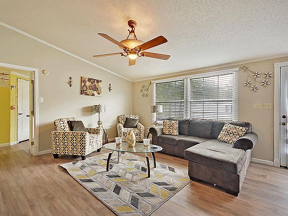 RENOVATED AND READY! New roof, new HVAC, and new laminate floors. Enjoy your fenced yard, new deck and play area. Spacious living room with fireplace and bar to eat-in kitchen, split bedroom layout allows for easy flow for family living. Home is de-titled and tied down on permanent brick foundation.