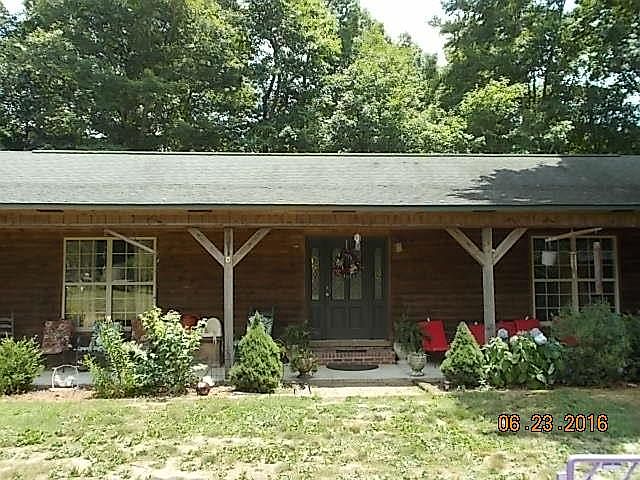 "UNIQUE"..SPLIT CEDAR LOG HOME!! AMISH MADE KITCHEN CABINETS WITH POPLAR WOOD FLOORING & HAND TURNED RAILING,CEDAR CEILINGS, COULD BE 4 BR. MASTER HAS PRIVATE DECK,UNDERGROUND UTILITIES, VERY OPEN WITH NICE SIZE ROOMS,SETTING BK OFF THE ROAD..............