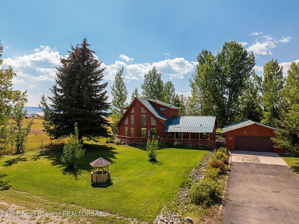 This cedar-sided home sits nicely positioned to take in the Wyoming views! Open layout with spacious kitchen and living room, two bedrooms downstairs and upstairs master suite. Oversized 2-car detached garage plus additional 23x20 section for workshop, or to store your toys. Beautifully landscaped yard with sprinklers, and complete with an asphalt driveway. Great opportunity to purchase your home in Wyoming and make it your own!