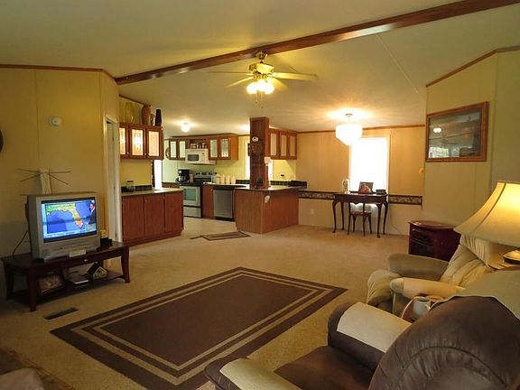 CHARMING hobby farm. All 4 acres fenced and cross fenced. Quiet country living at it's best. Hard to notice this is a mobile home. Large, covered, concrete front porch. Permanent foundation consisting of a 6 inch full slab and custom block. Wrap around deck on side and back of home. The home has 6 inch walls and large open floor plan. All new windows. New dishwasher. New carpet, tile flooring in the kitchen area. New Air conditioning unit in 2011.